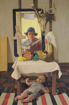Konrad often won awards in regional exhibitions, recognized for his commanding realist still life paintings with symbolic content addressing issues of censorship, warfare and terrorism. In 1994, the Davenport Museum of Art honored him with a retrospective exhibition. In later years he focused on landscapes that profoundly conveyed the beauty of his Iowa roots. His work is included in such collections as the Ford Manufacturing Company, Davenport, Iowa; Fort Benning Military Museum, Georgia; HON Corporation, Muscatine, Iowa; John Deere Corporation, Tokyo, Japan; Meredith Publishing Company, Des Moines, Iowa; the Muscatine Art Center, Iowa; University of Missouri, Kansas City; as well as the Figge Museum of Art and Augustana College in Rock Island, Illinois.